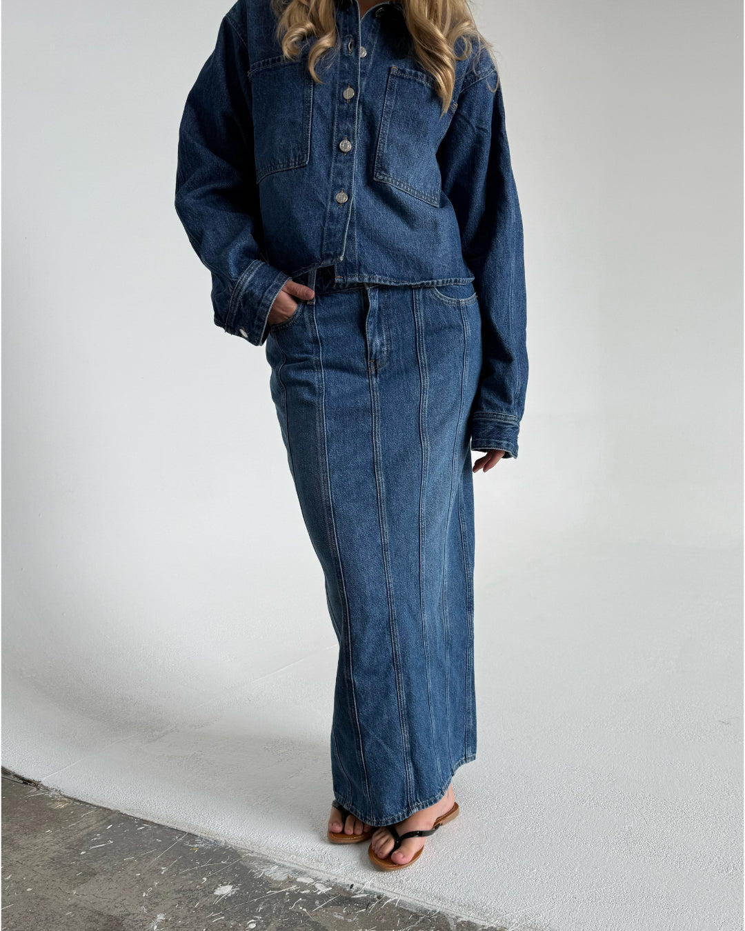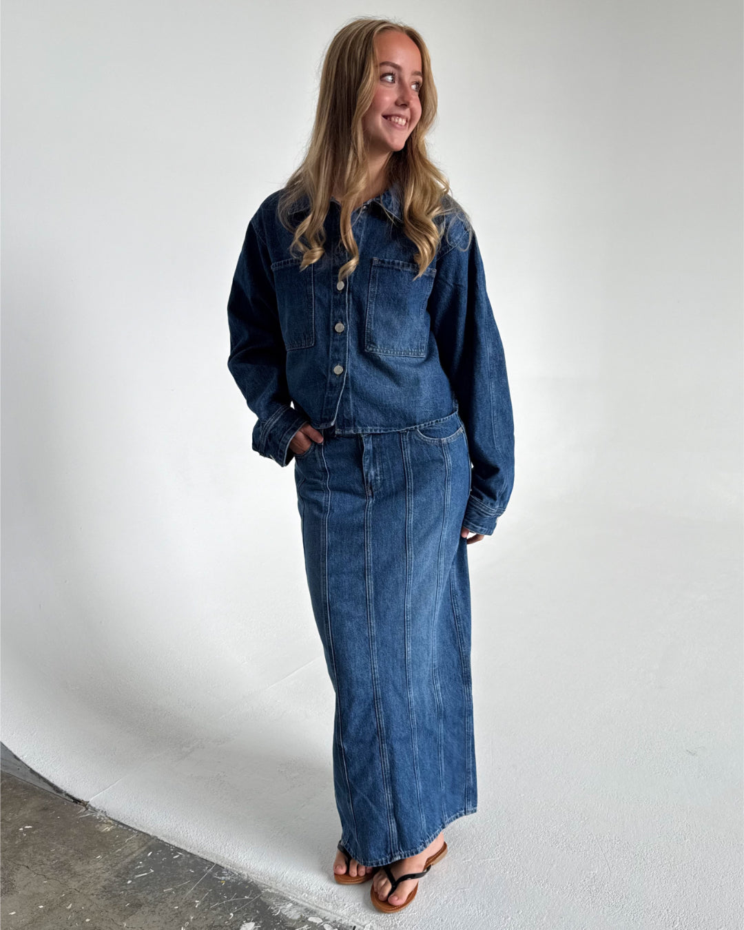 Kjolen har en matchande jacka/skjorta till - CANA denimjacka, blå.