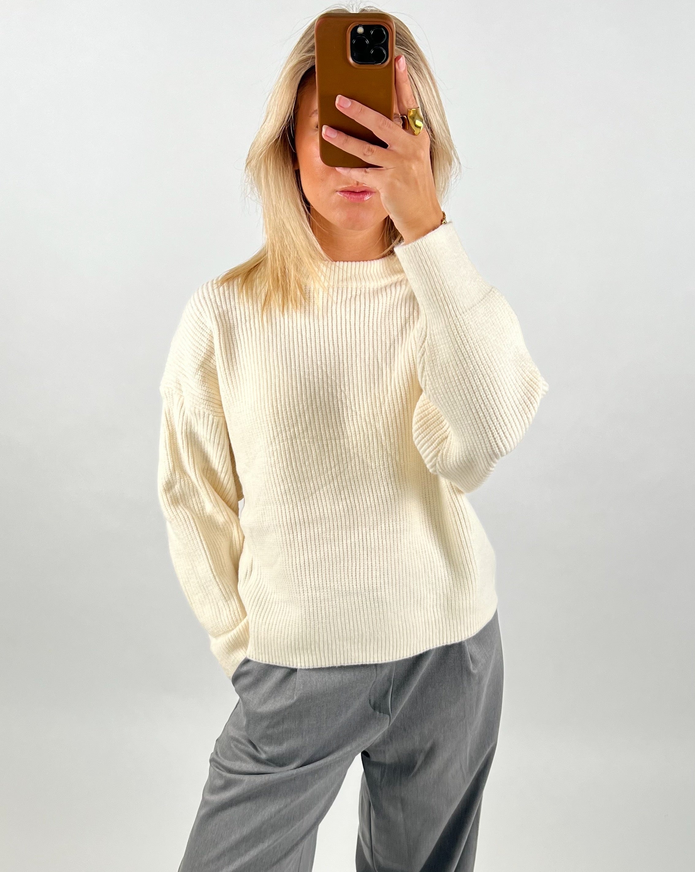 CARLY sticka, vit är i en elegant, klassisk vit färg. Stickan är en garderobsklassiker, och så är den gjord av mjuk ullblandning, som ger den komfort och stil.