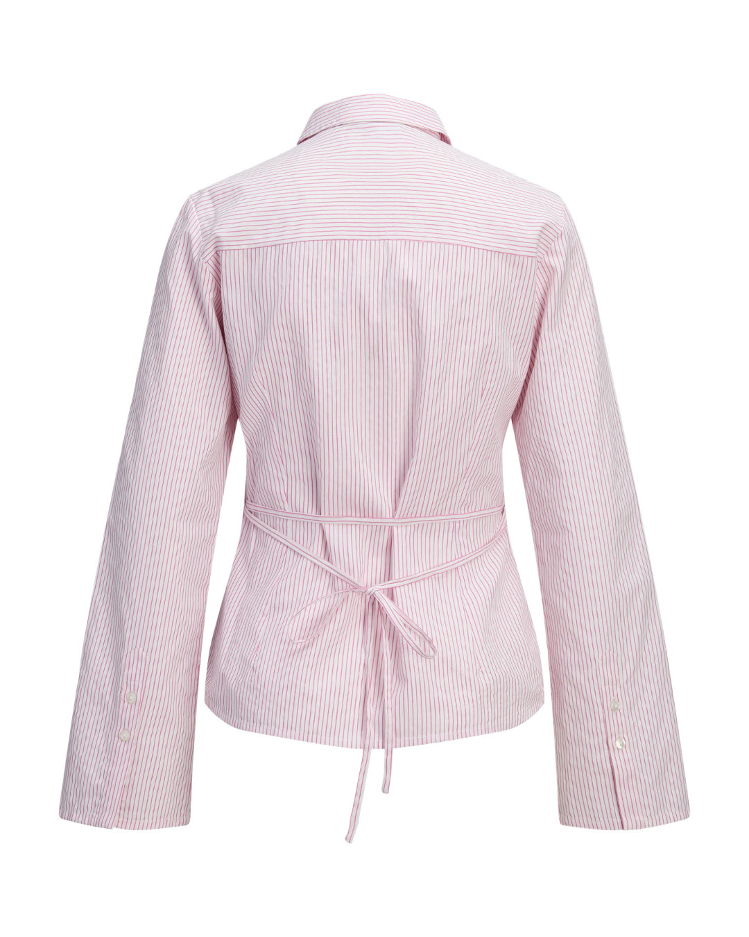 Få en fräsch och modern look med denna CARO waisted skjorta, ljusrosa. Skjortan har ett elegant, randigt mönster i vitt och ljusrosa, som ger ett klassiskt, men ändå trendigt uttryck. Den figursydda passformen framhävs av det smarta bindebandet i midjan, som ger möjlighet att justera snittet och skapa en vacker silhuett.