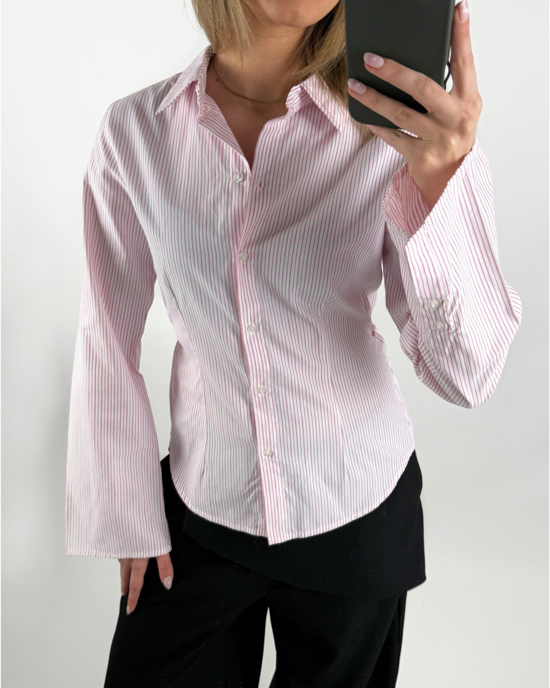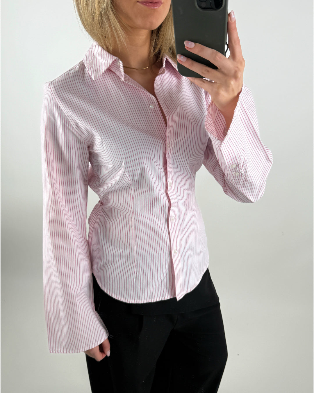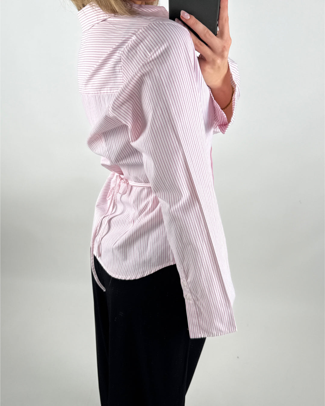 CARO waisted skjorta, ljusrosa är den perfekta bas skjortan, med en liten twist till garderoben. Du kan se alla våra skjortor HER.