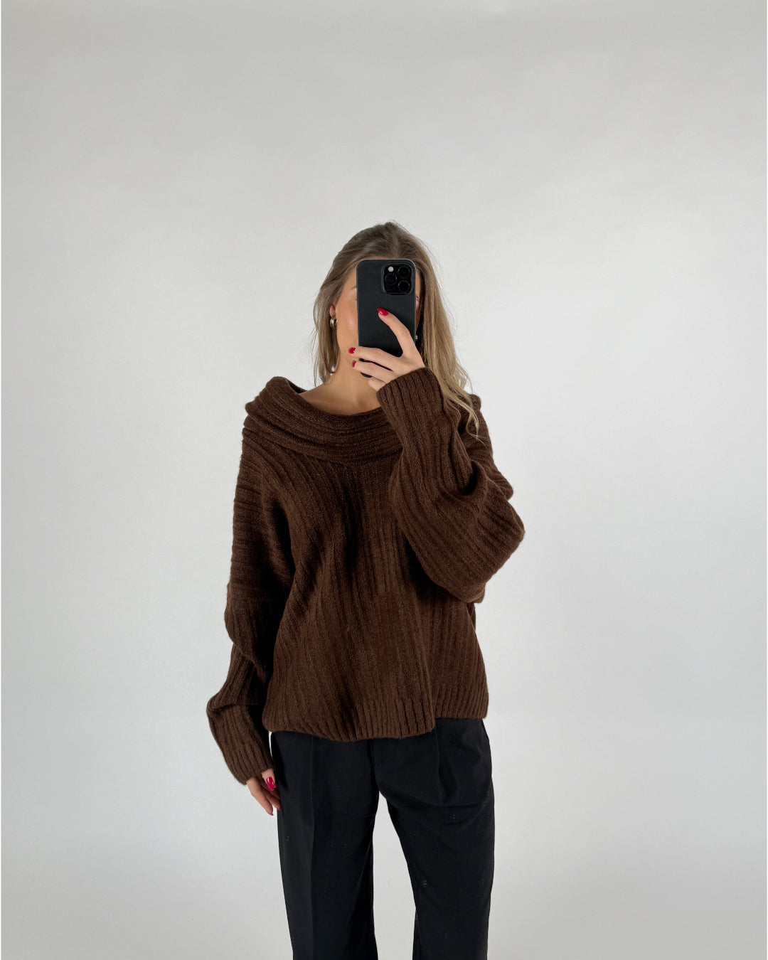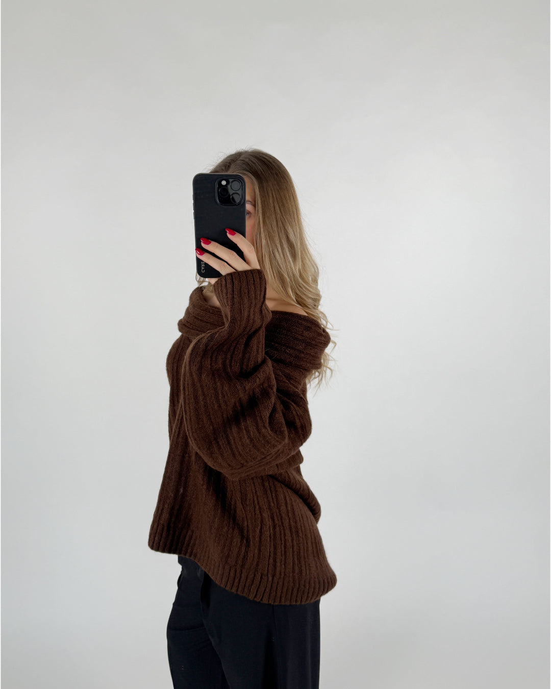 CIELO off shoulder sticka, brun är den finaste stickan. CIELO off shoulder sticka, brun är långärmad, och i ett stretchigt material. Stickan är en garderobsklassiker, och kommer att vara perfekt för de kalla dagarna.