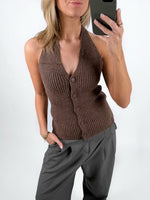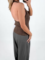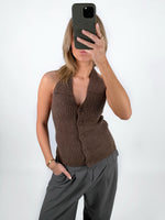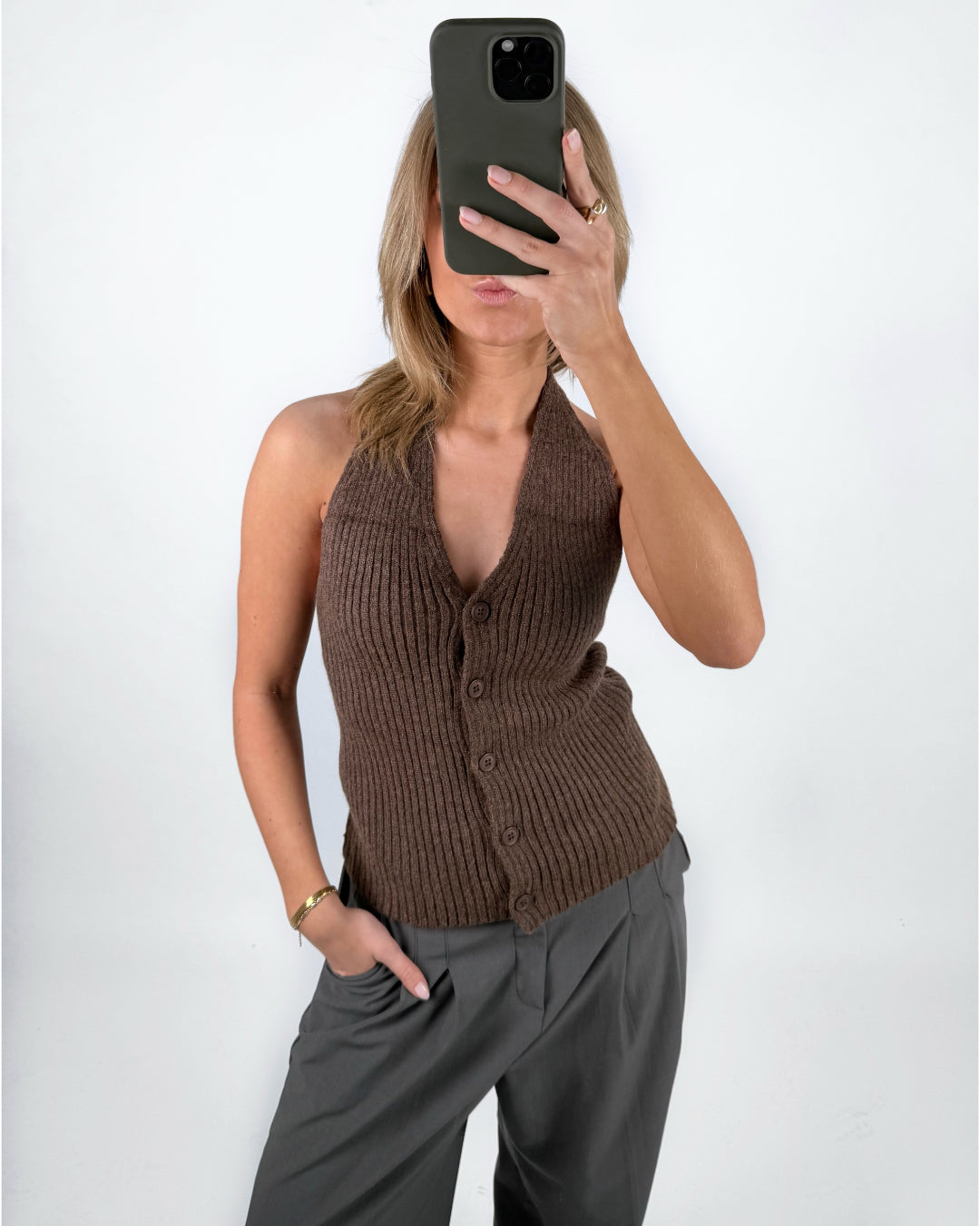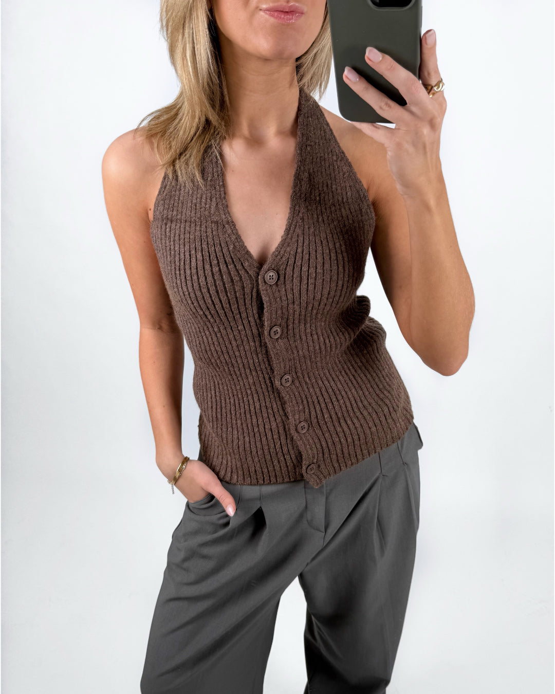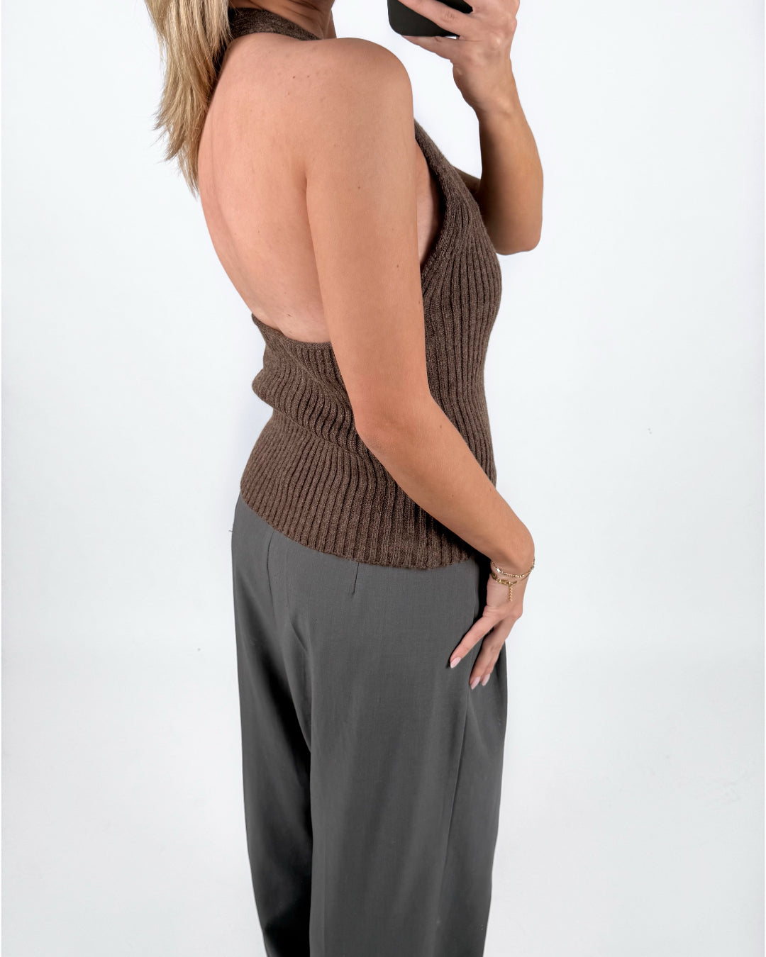 Toppen går ner i den vackra vattenfallseffekten och har öppen rygg.