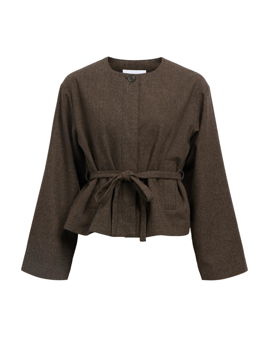 Vår vackra LAUREL blazer, grå är den vackra fitted blazern, med bindeband i sidan. Den vackra blazern med bindeband är perfekt för många olika tillfällen, då den kan stylas på tusen olika sätt.