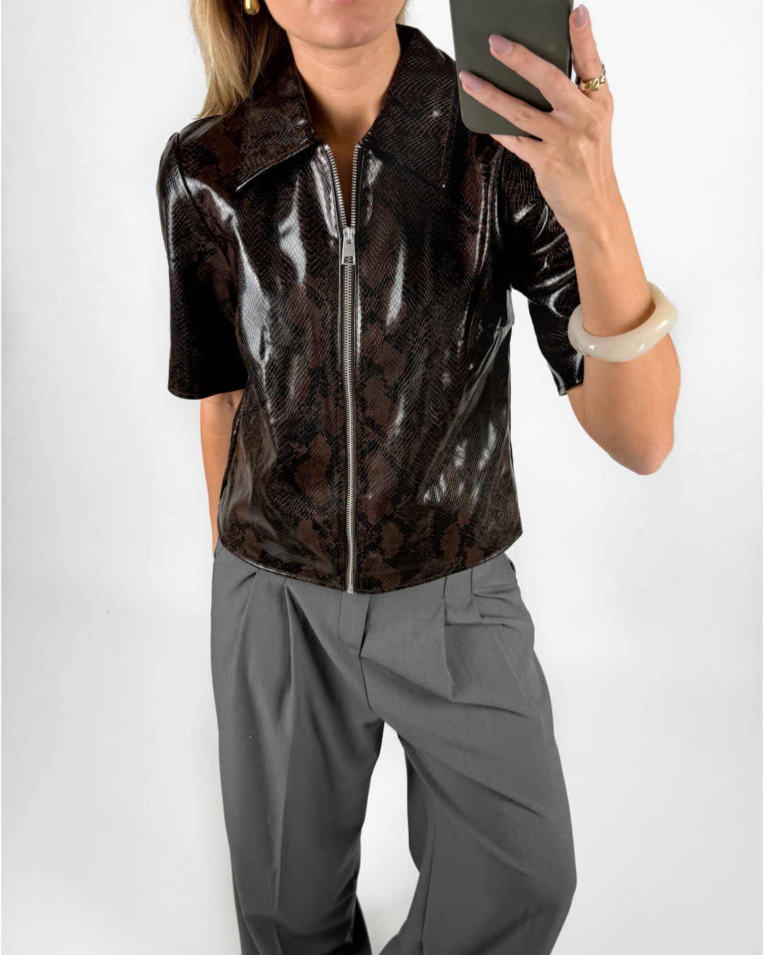 LOUISE denimskjorta, blå har vackra detaljer med blanka knappar, stora ärmar och en boxy passform.