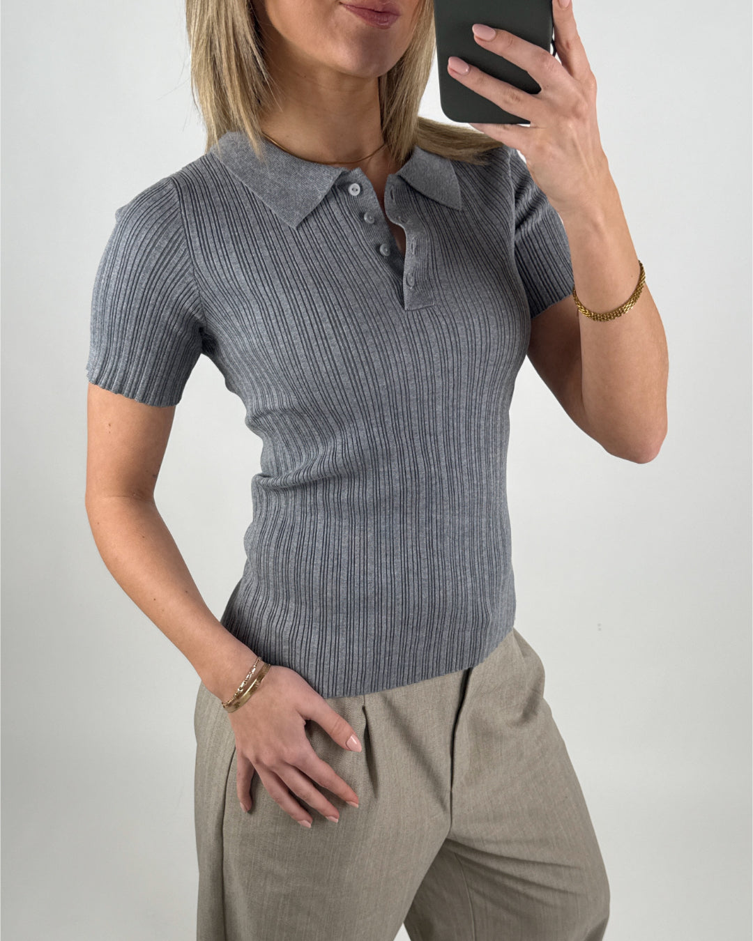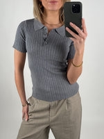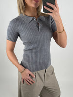 Uppgradera din basgarderob med denna klassiska HADLEY polo sticka, grå, som kombinerar komfort och stil. Stickan är gjord i ett mjukt och stretchigt ribbmateriel, som säkerställer en perfekt, figursydd passform och hög rörelsefrihet. Den har korta ärmar, polokrage och en fin knapplåsning fram, som tillför en sportig, men ändå elegant vibe – perfekt för både vardagsbruk och lite finare tillfällen.