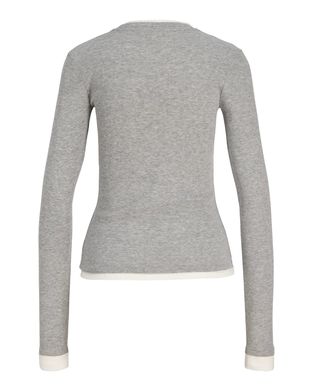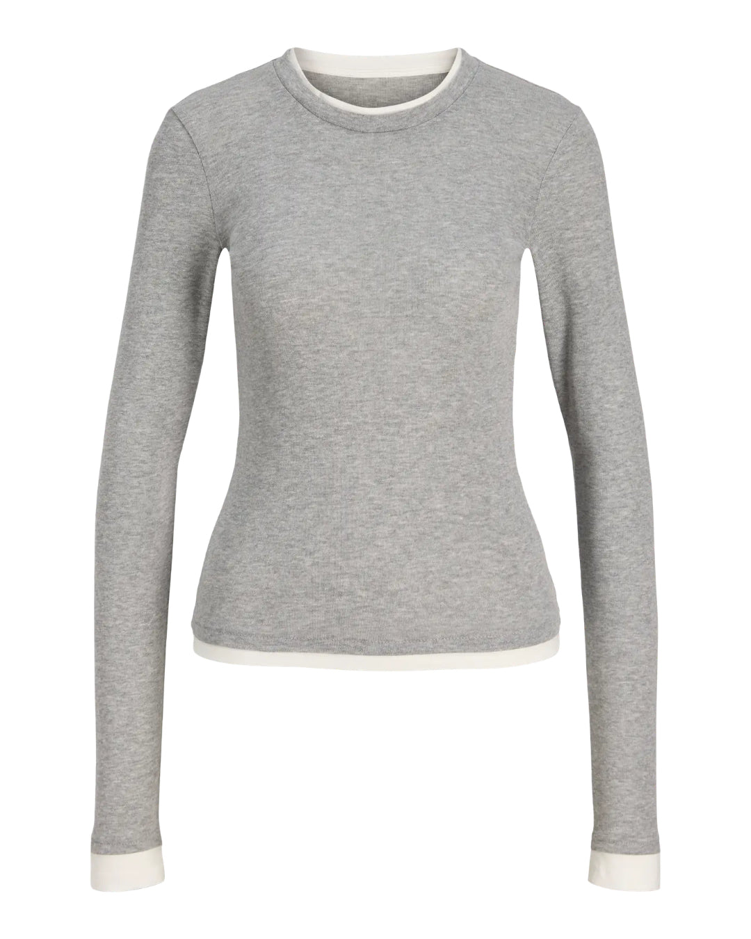 Den vackra HENNA långärmad, grå är den perfekta tajta långärmade t-shirten. T-shirten har den coola dubbla t-shirt looken, då det ser ut som om det finns en tröja under.