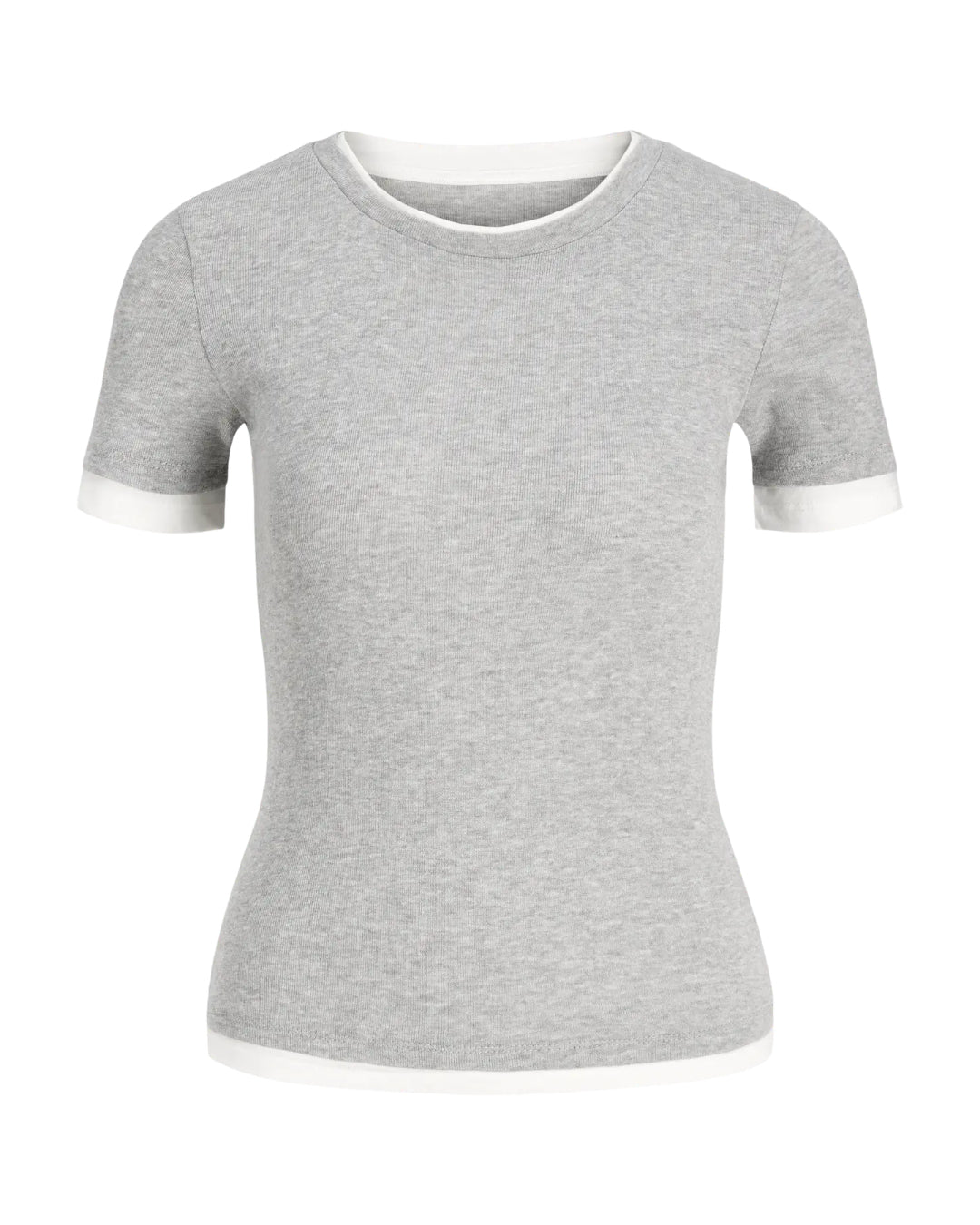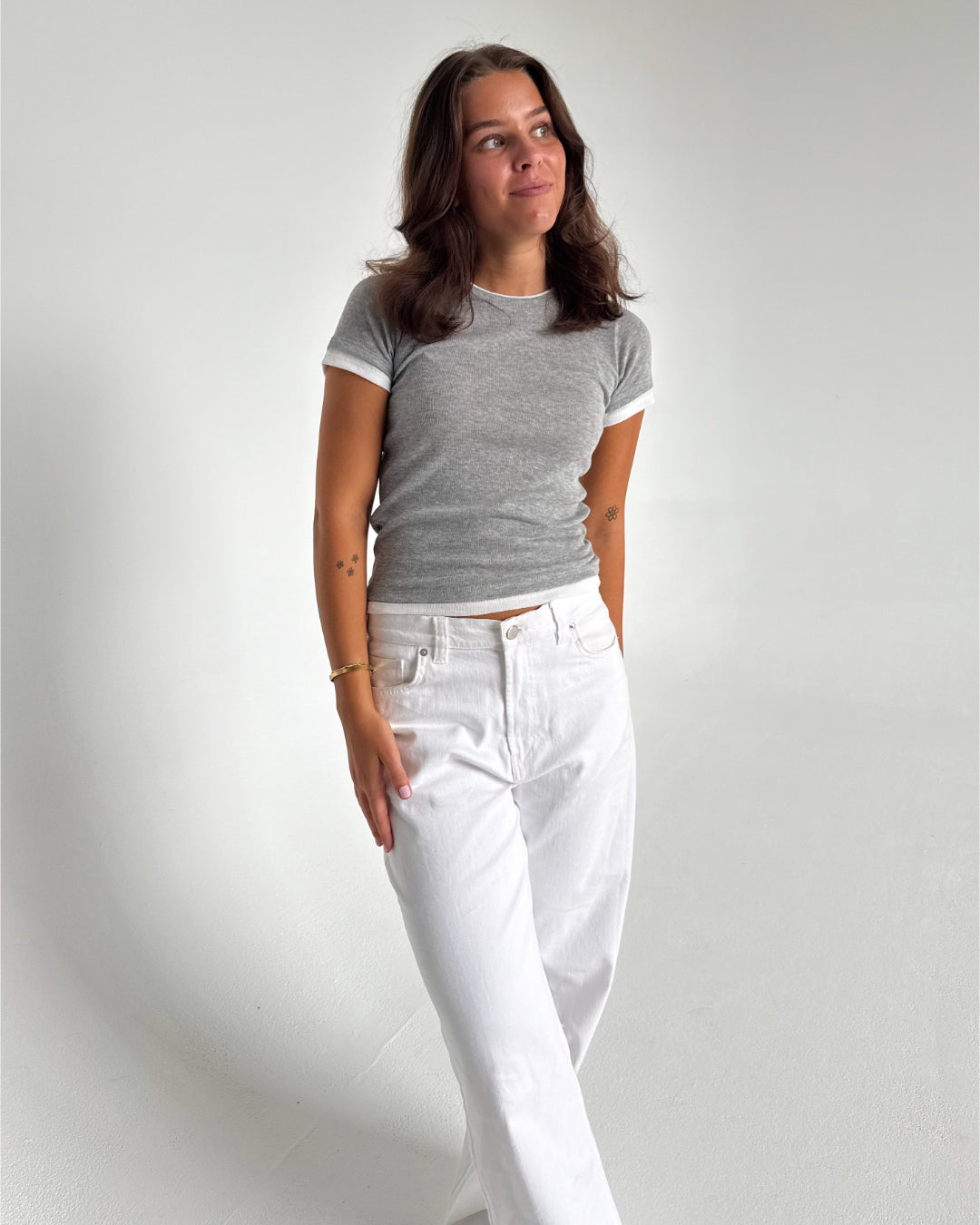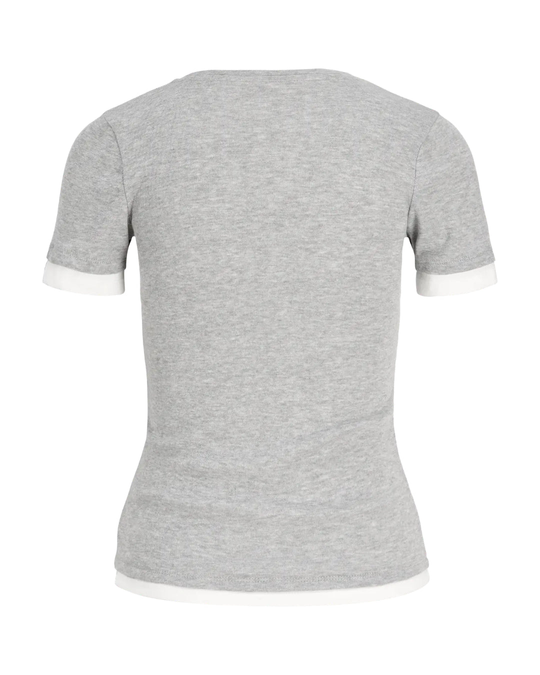 Den vackra HENNA t-shirten, grå är den perfekta tajta t-shirten. T-shirten har den coola dubbla t-shirt looken, eftersom det ser ut som om det finns en t-shirt under.