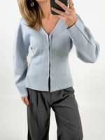 Vår INDY cardigan, ljusblå är perfekt för svala dagar med sin tidlösa design och höga kvalitet.