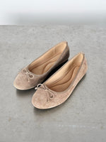 De vackra JOELLE ballerinaerna, sand är de perfekta ballerinaerna i mockaimitation. Ballerinaer är en tidlös och elegant sko.