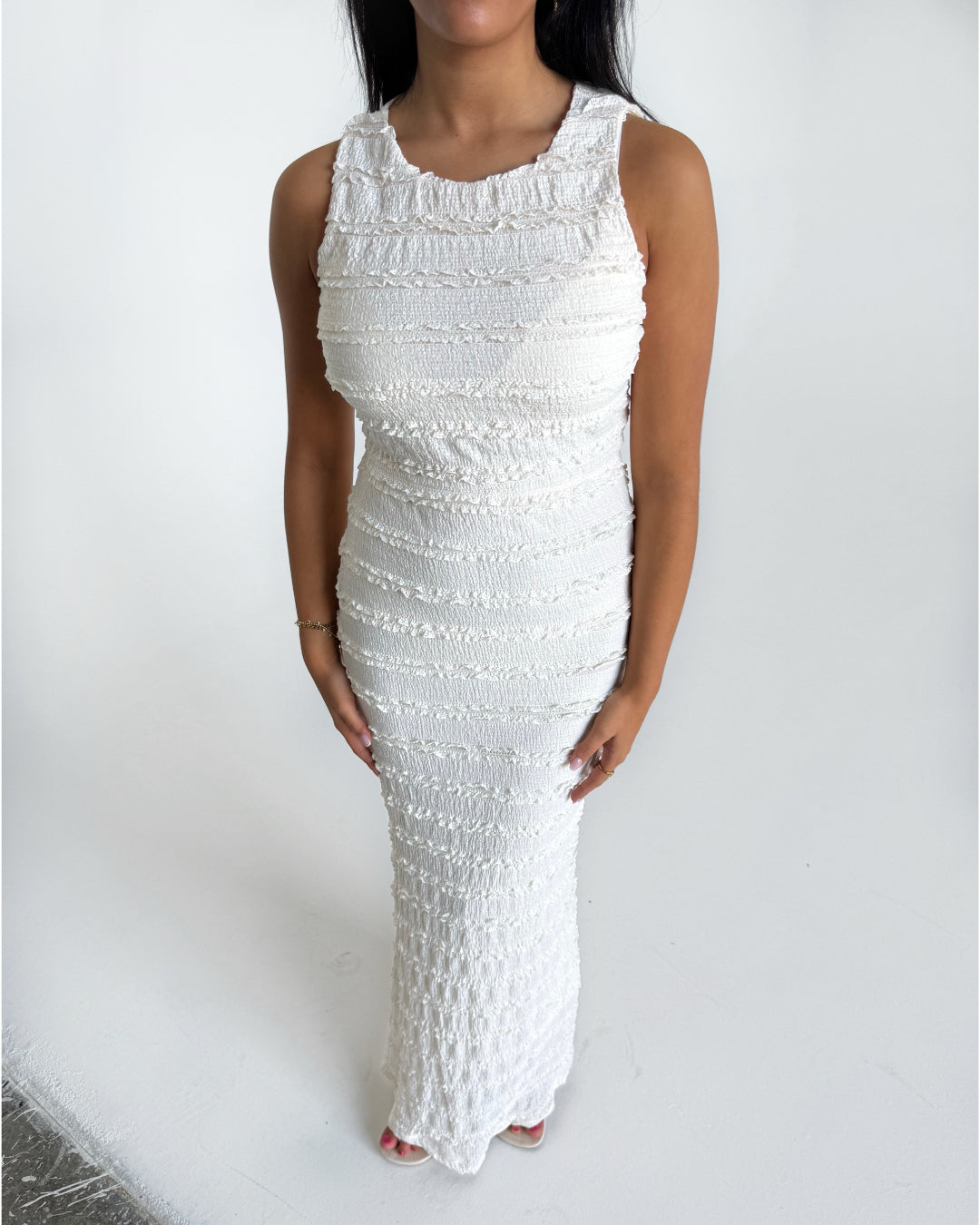 Vår KIMBERLY klänning, creme är en vacker maxiklänning, i en otroligt feminin look.