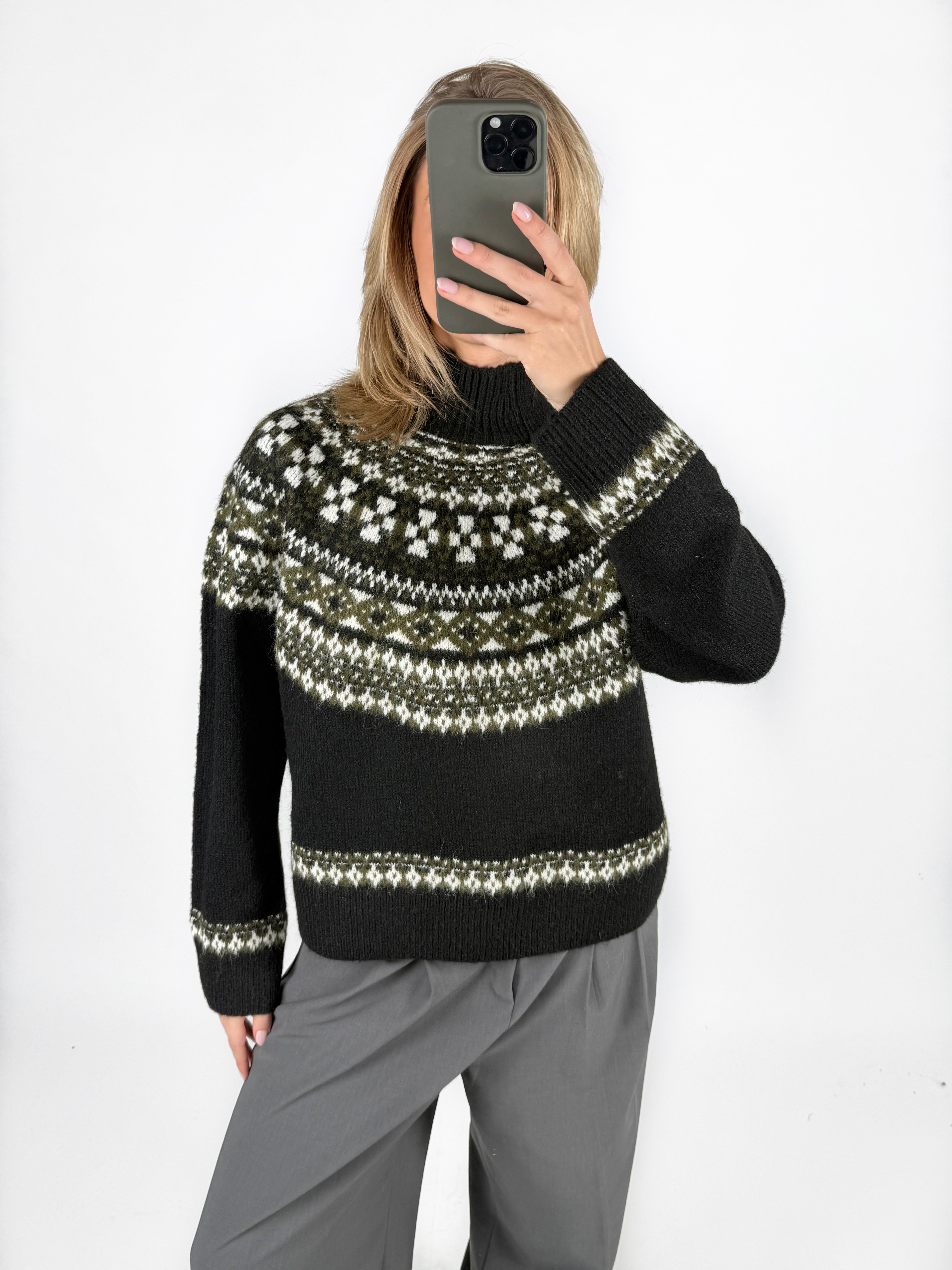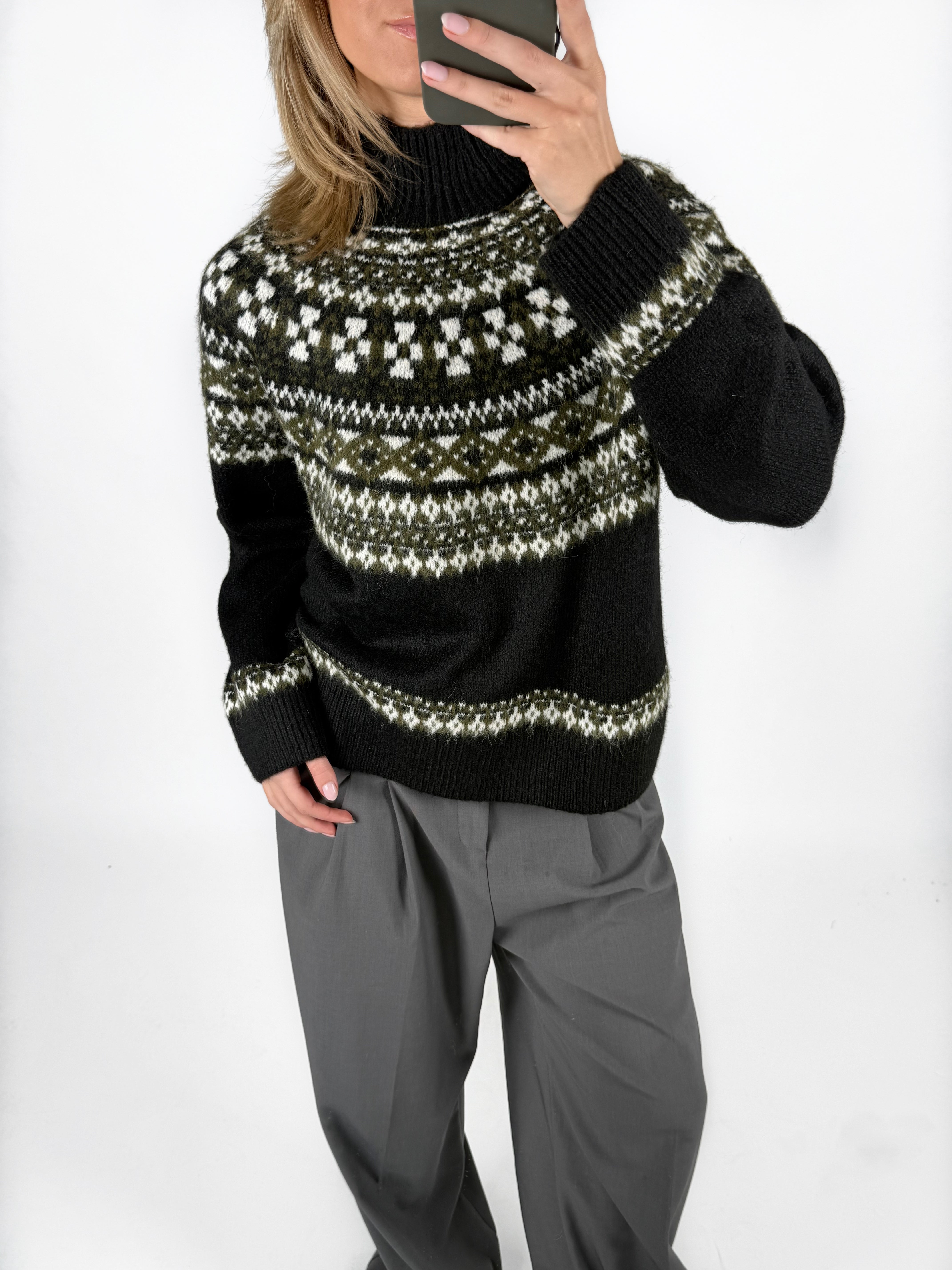 Detaljebillede af sort KRISTIN striktrøje. Fra BySofieSønderby.