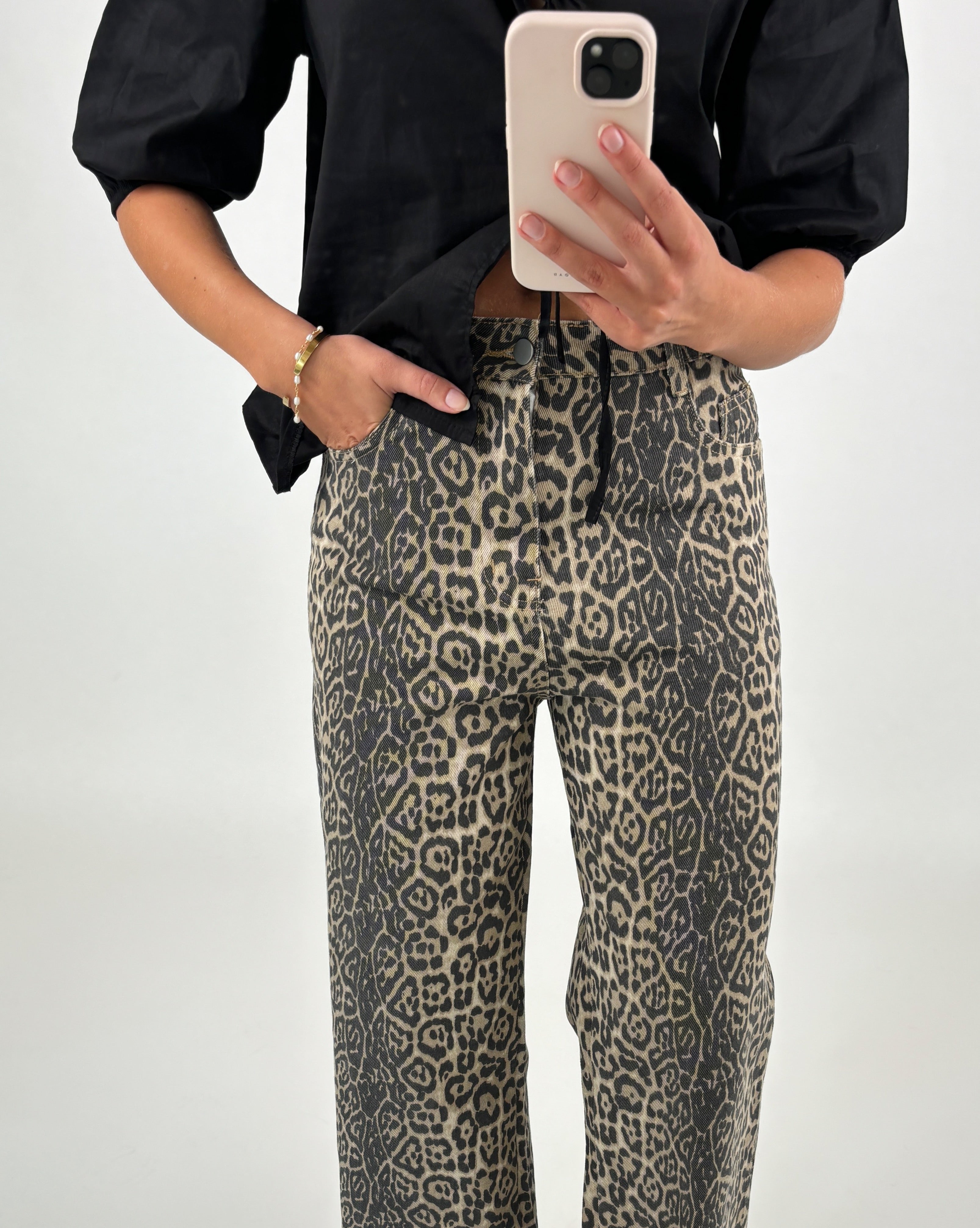 LUDMILA jeans, leopard är den perfekta underdelen och kan verkligen göra din outfit lite häftigare. Dessutom passar de perfekt till många av våra basic t-shirts på HJEMMESIDEN.