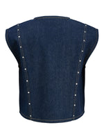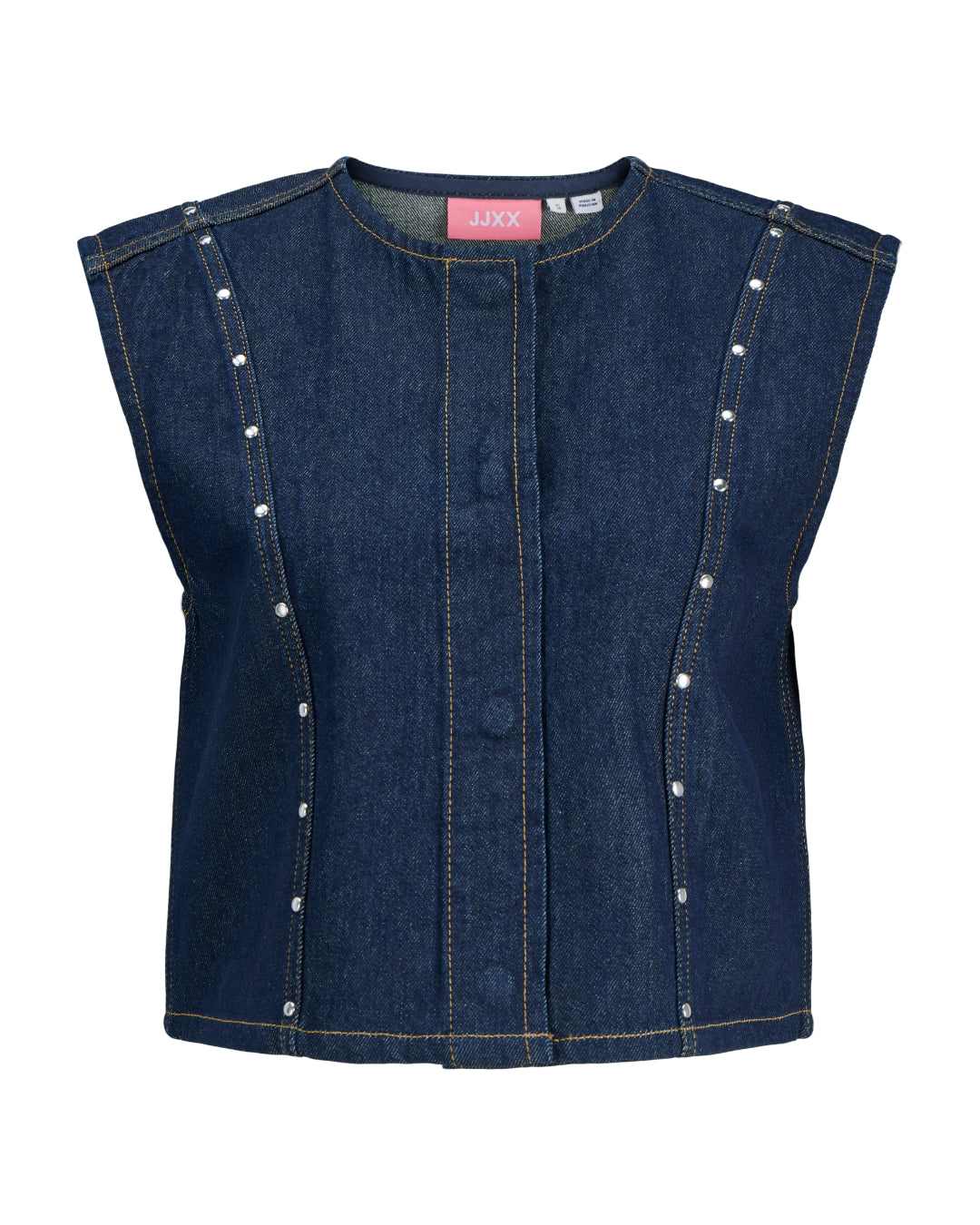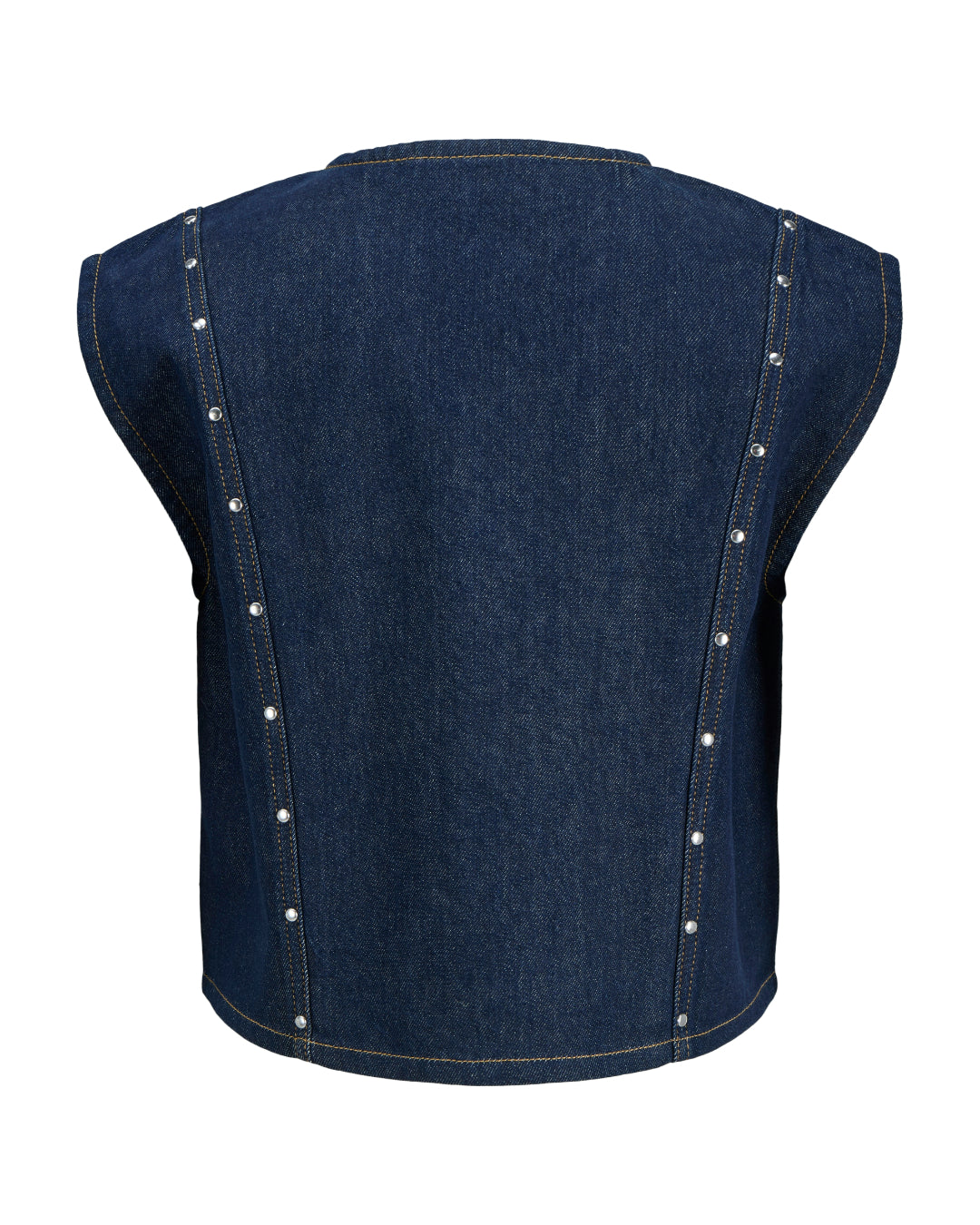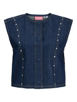 Den smukke MAE denim top, mørkeblå er den perfekte denim top med et twist. Toppen har snit som en denim vest, og har smukke stud detaljer. Toppen har en matchende underdel, så det sammen udgør et cool denim sæt.