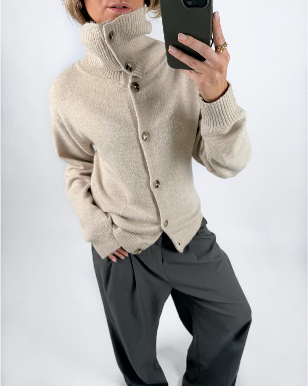 – Cardigan med v-ringning.