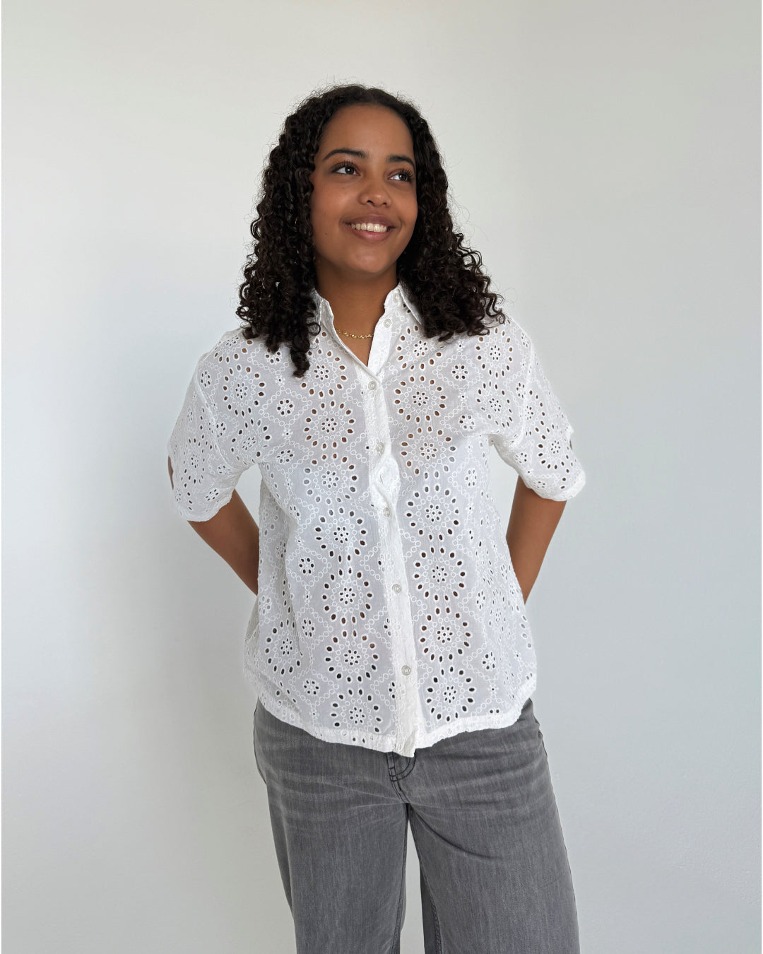 En broderad skjorta är ett måste i garderoben, och vi tycker själva att denna MILLIE skjorta, vit är ett riktigt bra alternativ. Skjortan har en klassisk lös passform och är med korta ärmar.