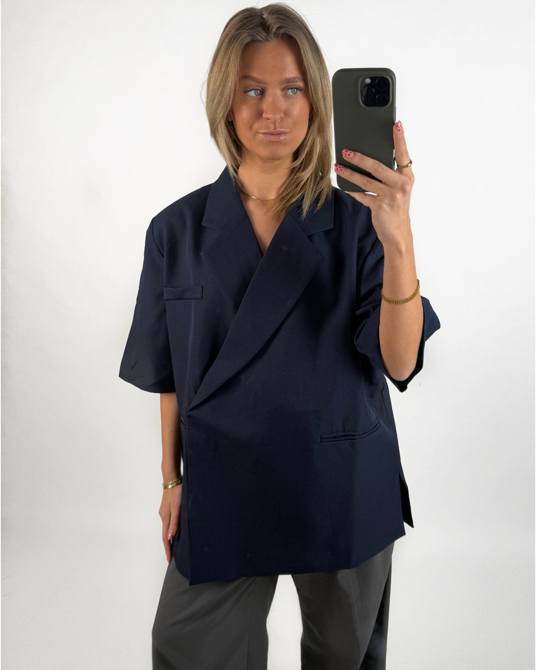 MINNIE oversized kortärmad blazer, navy