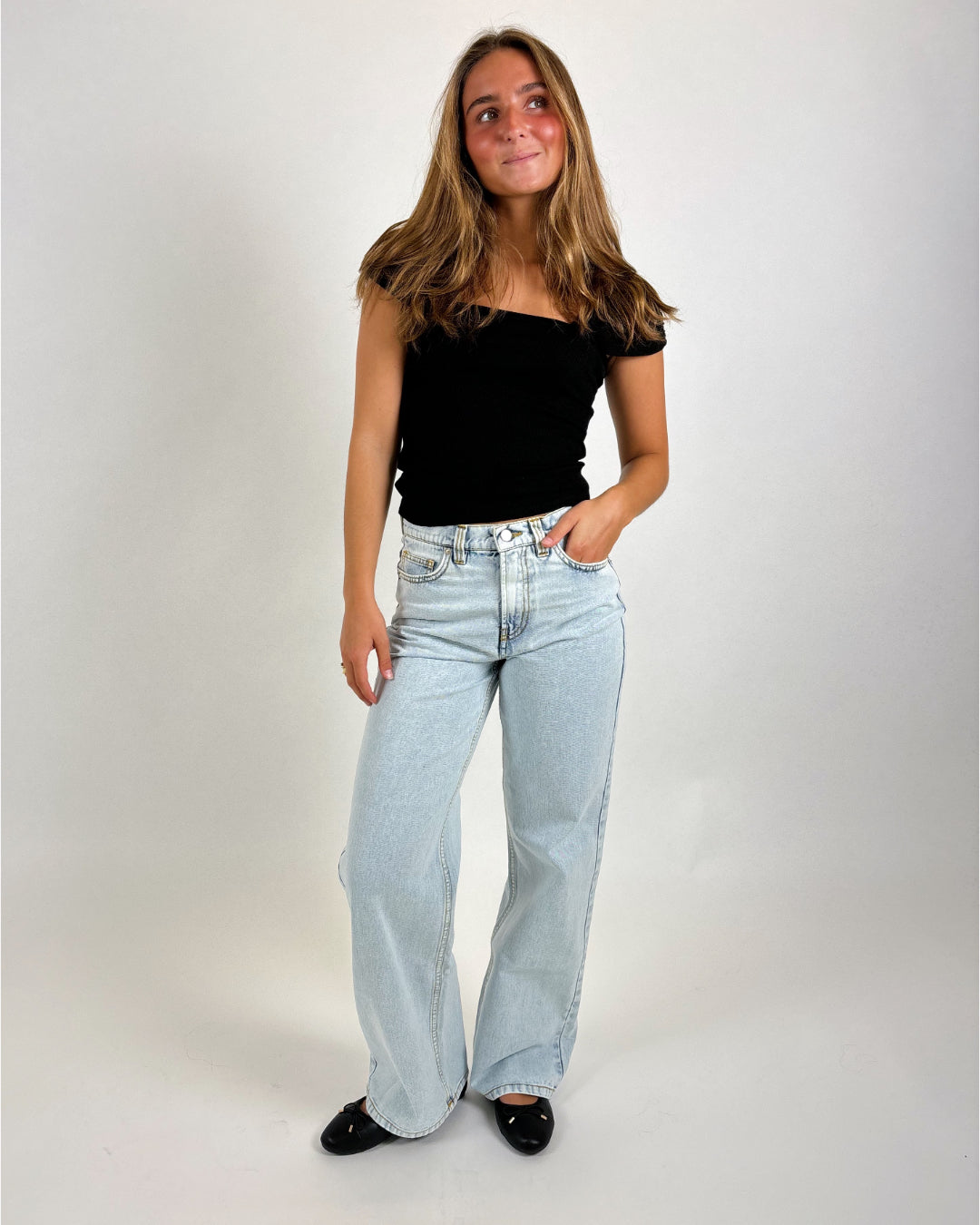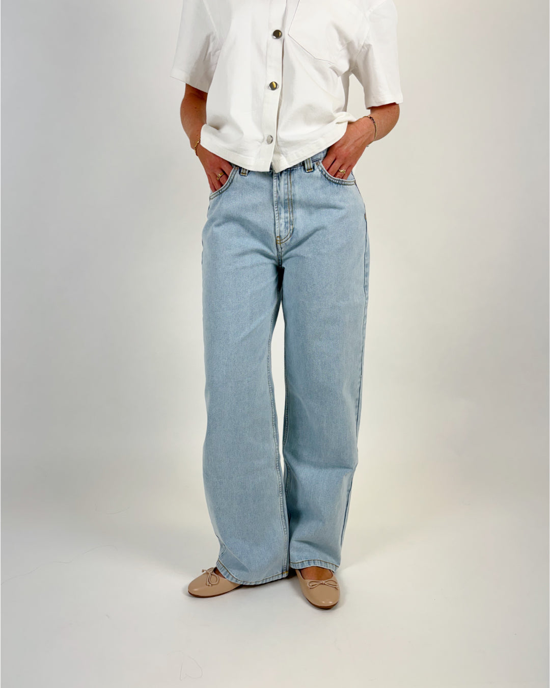Byxan matchar både med vår LOUISE denimskjorta, men också med vår ANNIKA denimtop. Tillsammans utgör våra jeans och matchande överdelar ett vackert set.