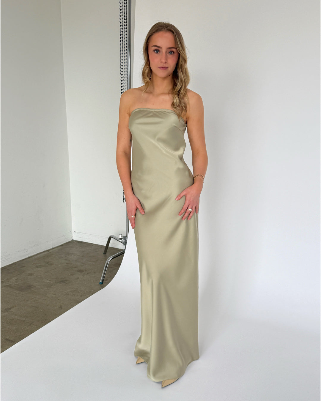 Gör dig redo för sommarens många evenemang med denna klassiska bandeau NAT strapless klänning, grön. Klänningen har en elegant, enkel och tidlös figur med rak överkant, vilket framhäver axlarna och ger ett fint uttryck. Den figursydda, lätt midjade passformen säkerställer en vacker och feminin silhuett, medan det mjuka och lätta materialet gör klänningen ytterst bekväm att bära.