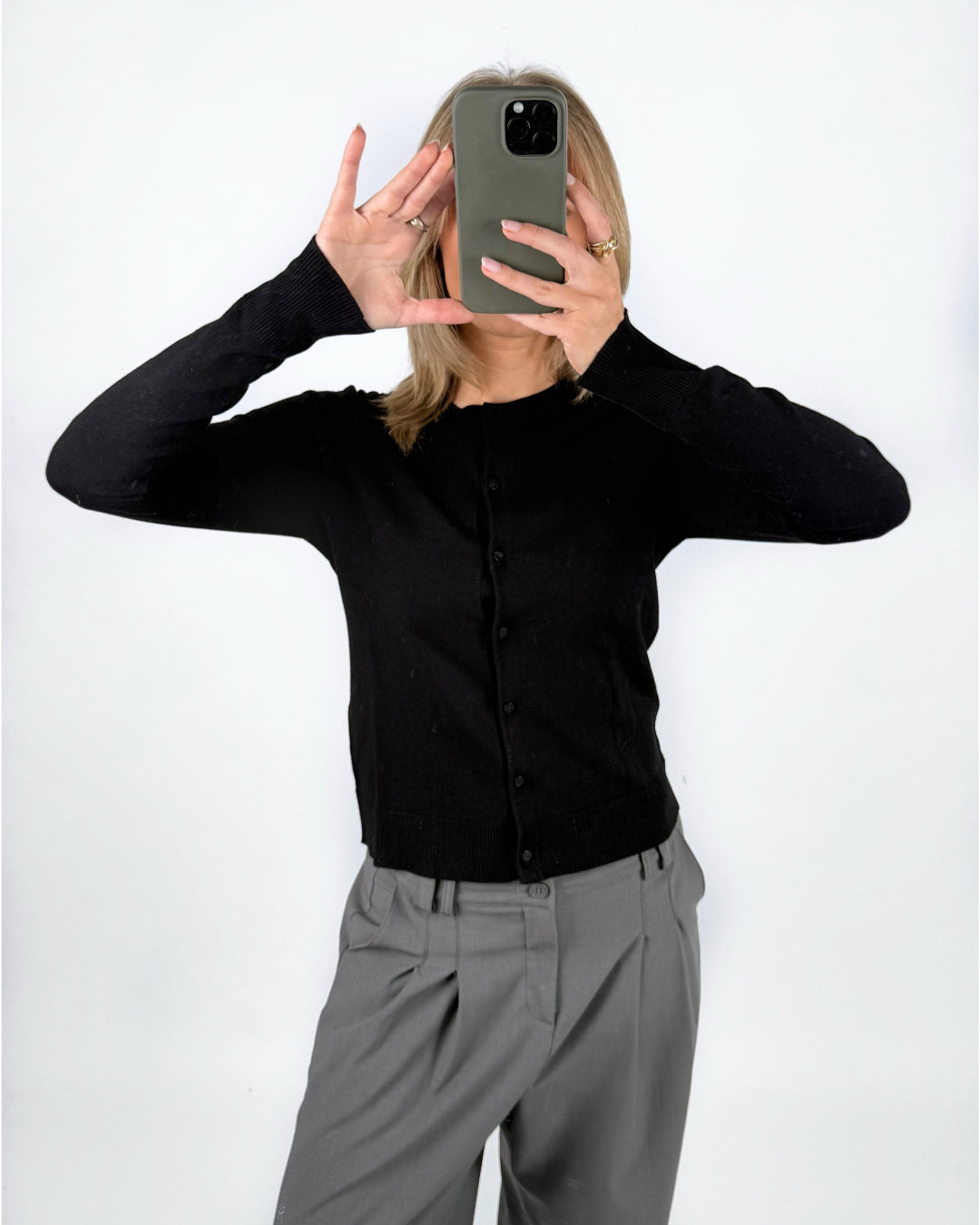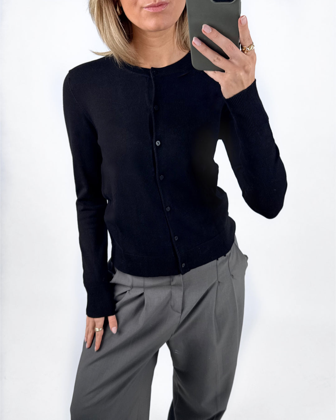 Vores OPHELIA strik cardigan, sort er perfekt til alle hverdage med sit tidløse og simple design.