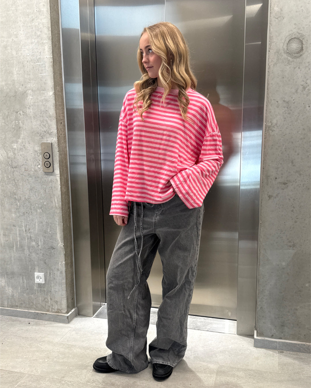 Den fede boxy PENNY stribet long sleeve, pink/lyserød er den perfekte stribede langærmede trøje til garderoben. Trøjen er i et blødt bomuldsstof, hvilket gør at den sidder så cool.