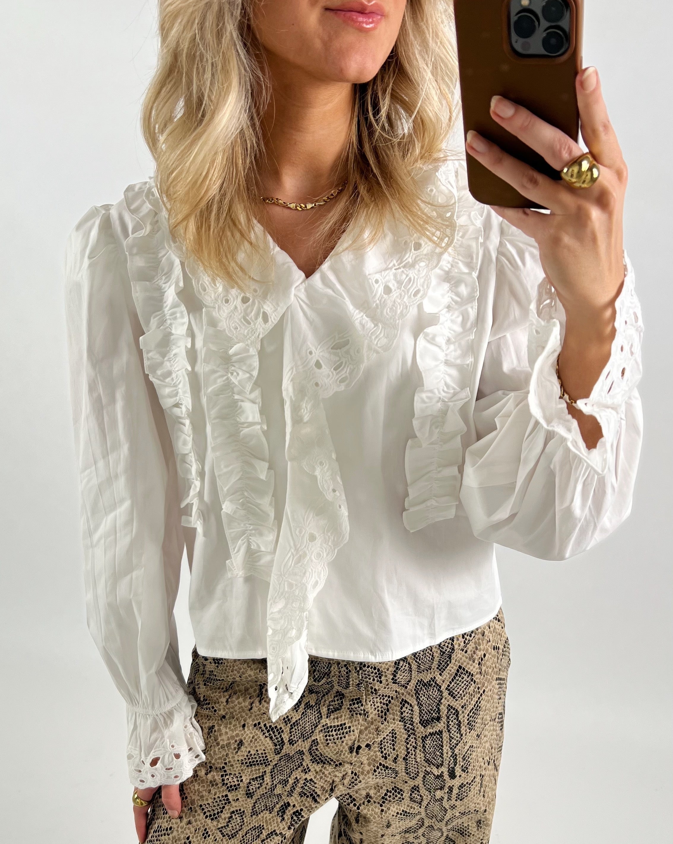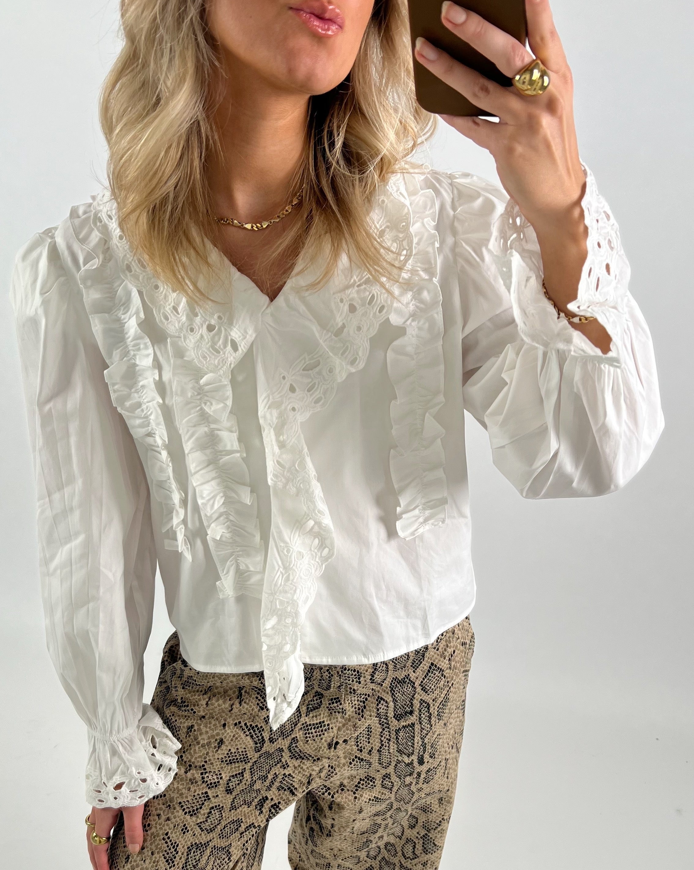 SALEM blus, vit passar perfekt till både en finare vardagslook såväl som festliga tillställningar.
