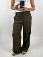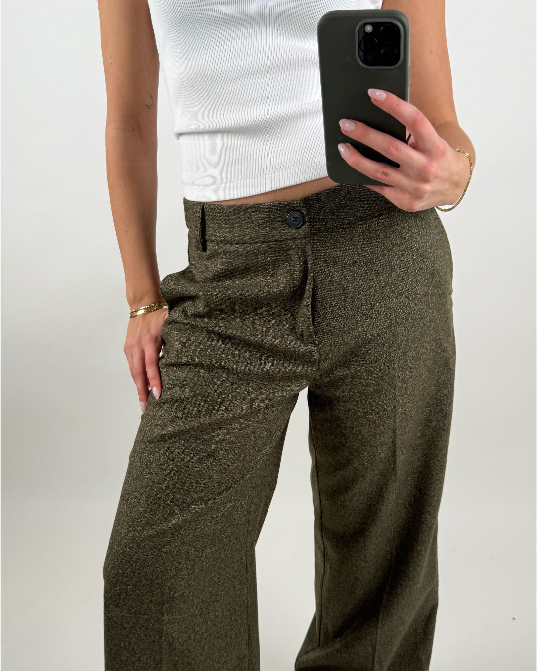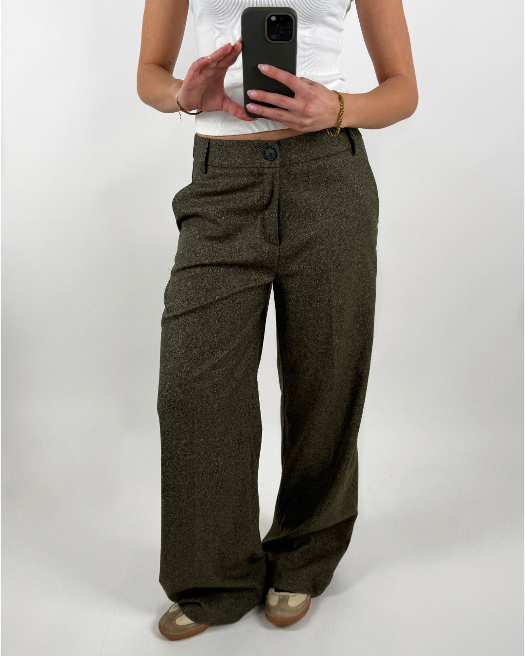 Dessa eleganta SIDSEL byxor, melerat kaki är det perfekta valet för dig som önskar ett elegant och modernt uttryck i garderoben. Byxorna har breda ben, vilket ger ett tidlöst och chic utseende.