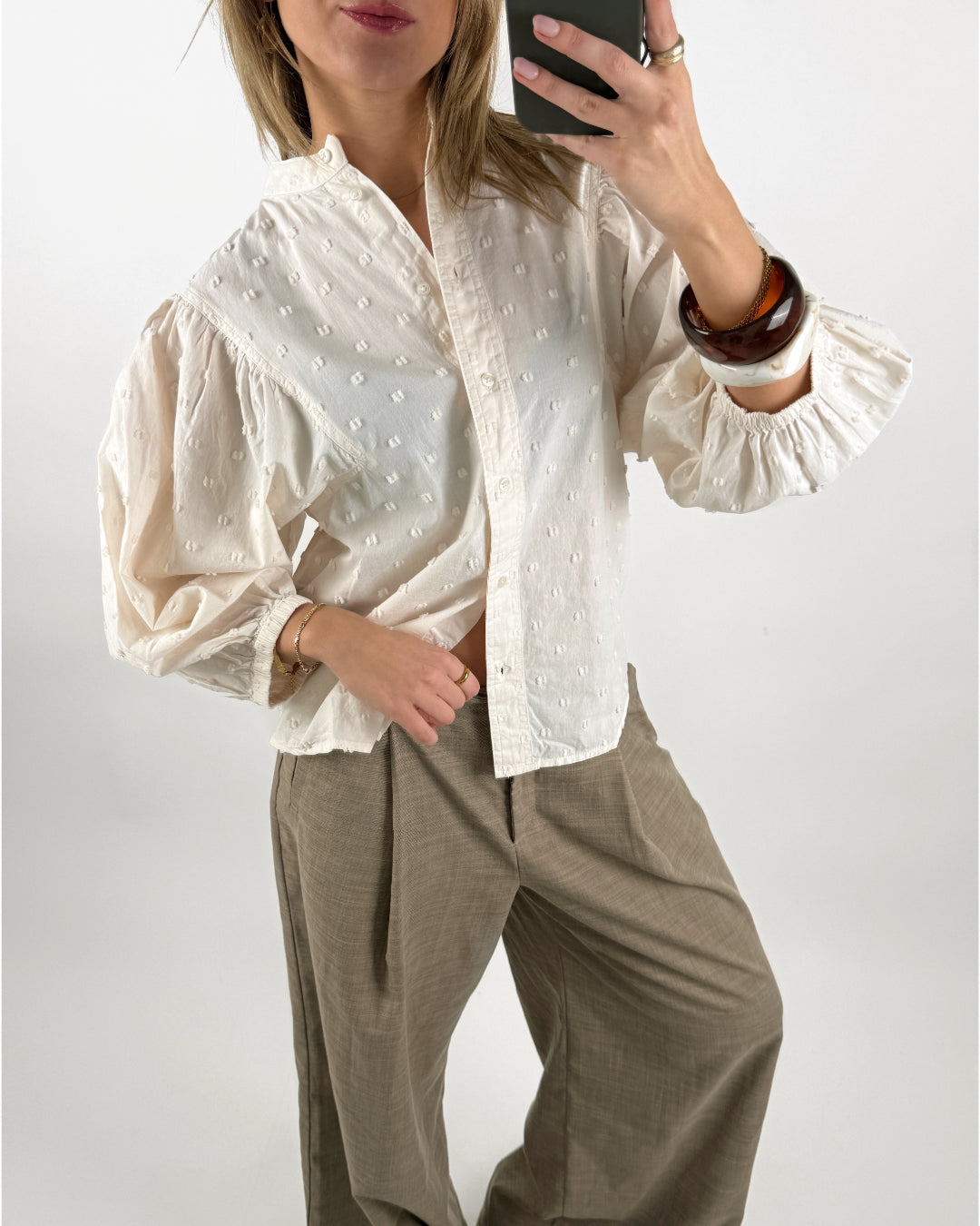 Det söta broderiet i tyget ger ett elegant och unikt uttryck, medan knäppningen fram, som går hela vägen upp till kinakraven, också ger en avslappnad look.