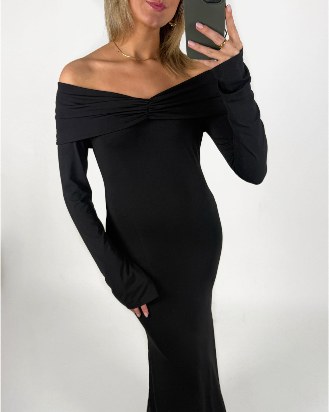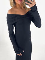 XANDRA off shoulder klänning, svart är en vacker off shoulder klänning, som kommer att vara perfekt för varje festlig tillfälle. Maxiklänningen är sydd i ett mjukt och bekvämt material, och ger en extra detalj med sitt off shoulder utseende.
